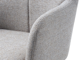 Stolen er betrukket med det eksklusive NOLIO-stof, der kendetegnes ved sin unikke Panama-vævning og fløjlsbløde chenille-garn. Den subtile struktur og de diskrete farvenuancer giver en levende overflade med dybde og karakter. Underbeklædningen i stoffet forstærker materialets holdbarhed, så Alvra ikke blot imponerer med sit udseende, men også med sin modstandsdygtighed i hverdagen.