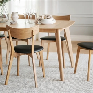 Materialer Stel i oileret massiv eg med sæde i sort kunstlæder