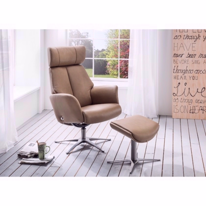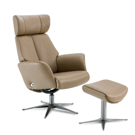 Lænestolen har en flot rund sokkel, og stolen kan drejes 360 grader hvilket gør den utrolig praktisk i stuen. Herudover er der forskellige indstillinger til justering af hoved støtten, således at den passer helt perfekt.
