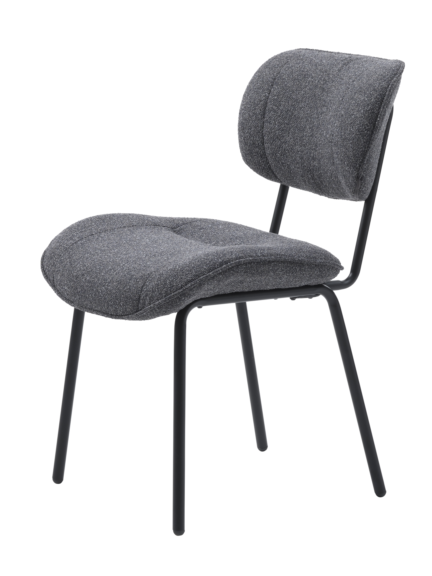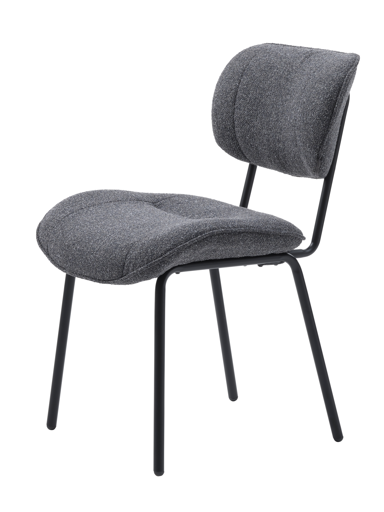 Sædet er betrukket med det eksklusive HEVRE-stof, der kombinerer bløde multifilamentgarn med fine tråde for at skabe en subtil boucle-effekt. Resultatet er et stof, der føles behageligt mod huden, men samtidig er ekstremt slidstærkt og ideelt til daglig brug. De diskrete farvenuancer i stoffet giver stolen dybde og karakter, så hver enkelt stol fremstår unik og levende i udtrykket.
