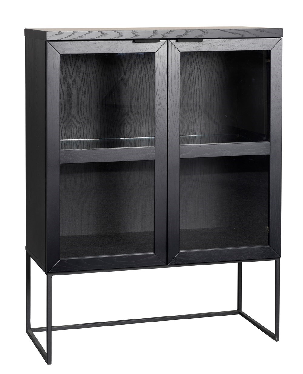 Dette moderne vitrineskab fra Rowico, er fra den populære Everett serie. Everett vitrineskabet er designet med et moderne sort metalstel, og med sorte metal håndtag.