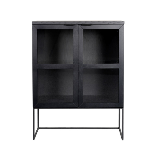 Rowico Everett | Højt sort vitrineskab m. glaslåger