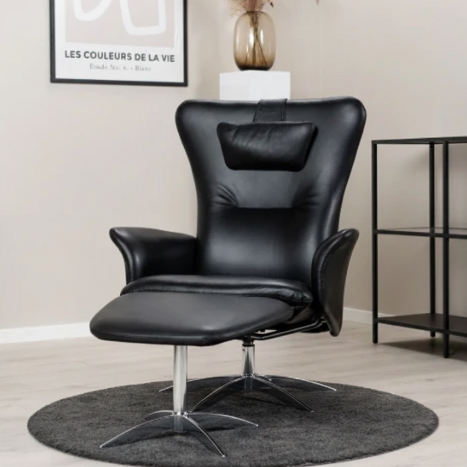 Stolens ydre er lavet af lækker og blød semianilin læder af højeste kvalitet. Dette betyder, at den ikke kun ser fantastisk ud, men også føles utroligt blød og behagelig. Det er som at synke ned i en sky af luksus, hver gang man tager plads i denne lænestol.