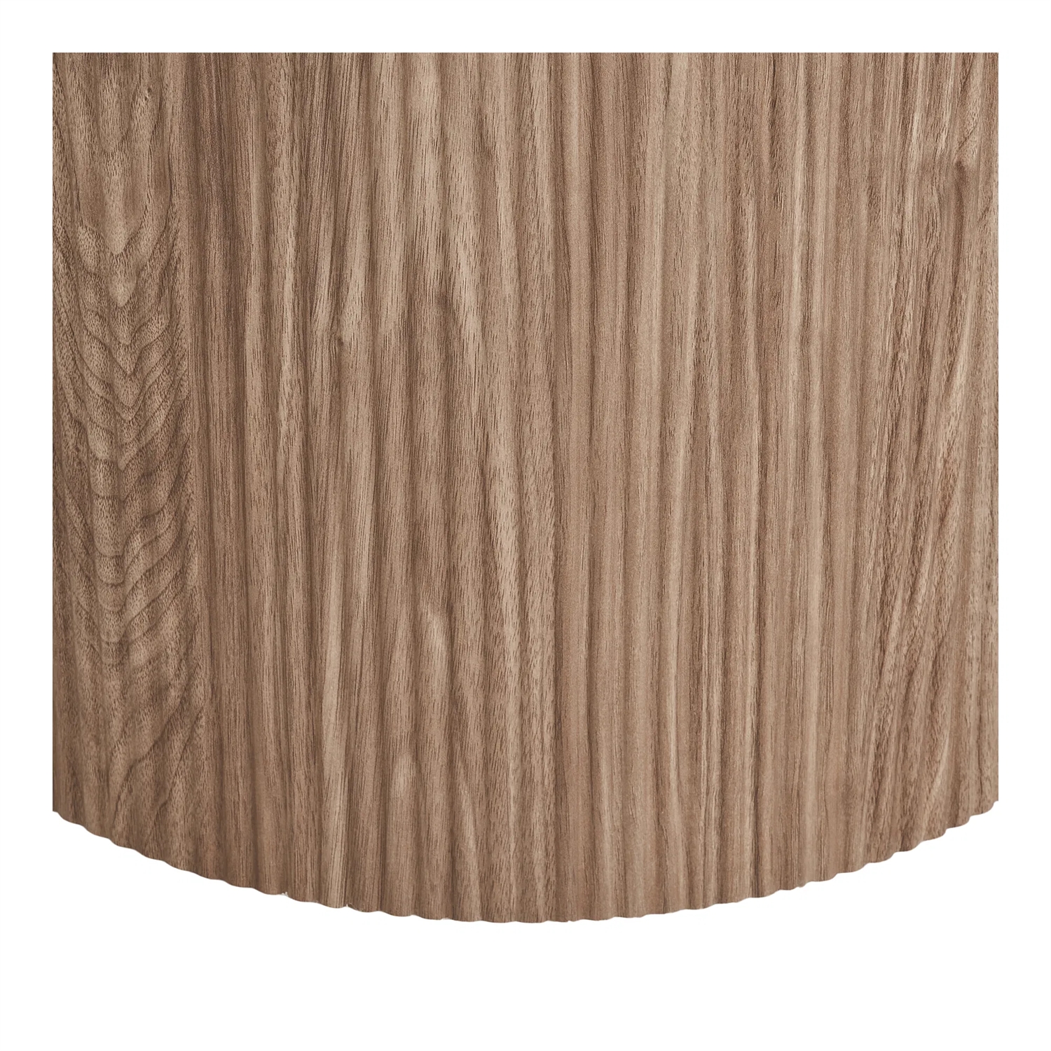 Det varme stel i trælook tilfører bordet dybde og balance og skaber et naturligt samspil med den lyse bordplade. Den runde form gør det let at samles omkring bordet og giver en afslappet og social spiseoplevelse, hvor alle har plads.