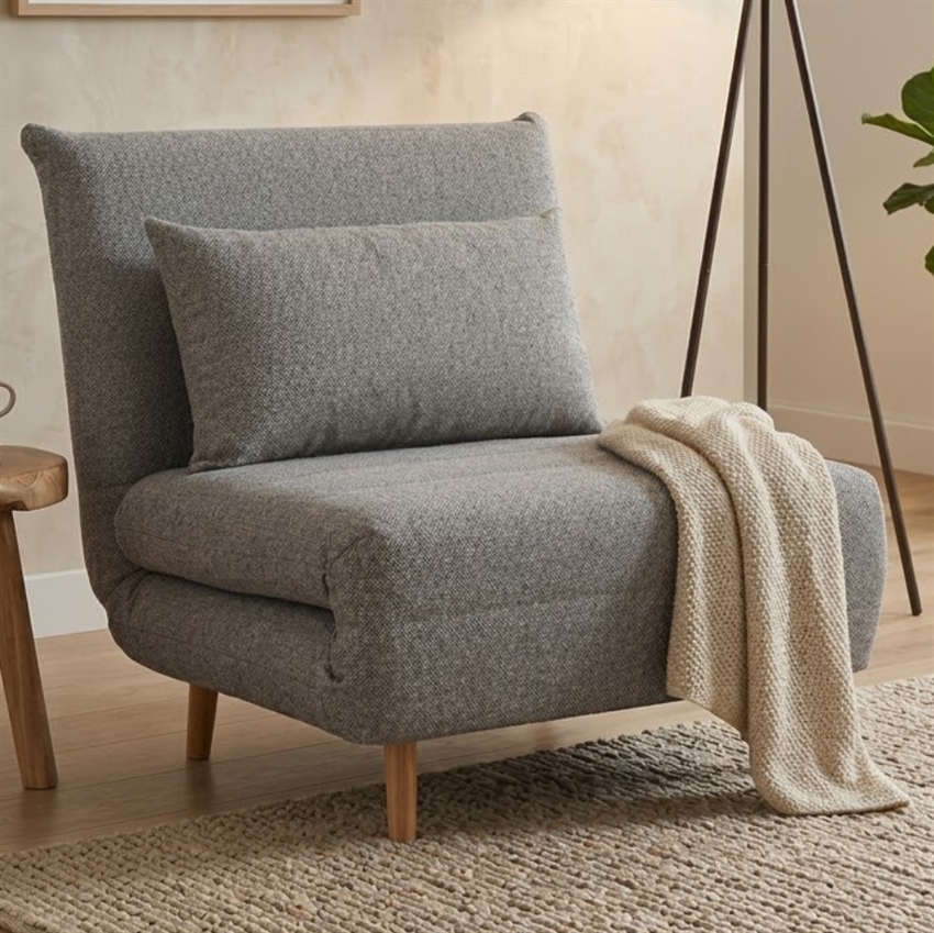 IOWA sovestol er omhyggeligt udformet i et højtydende gråt polyesterstof, der ikke blot giver en følelse af komfort, men også sikrer langvarig holdbarhed. Den støttes af elegante træben, som tilføjer et naturligt touch til dens moderne design. Med dens indbydende farve og tekstur, passer denne sovestol nemt ind i ethvert rum, hvilket giver det en følelse af varme og hygge.