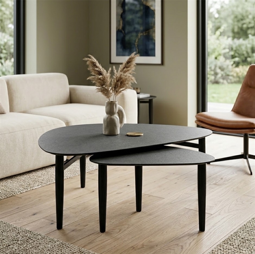 Katrine sofabordssæt | Mørkegrå stenlook m. sort lakeret egKatrine sofabordssætKatrine sofabordssæt