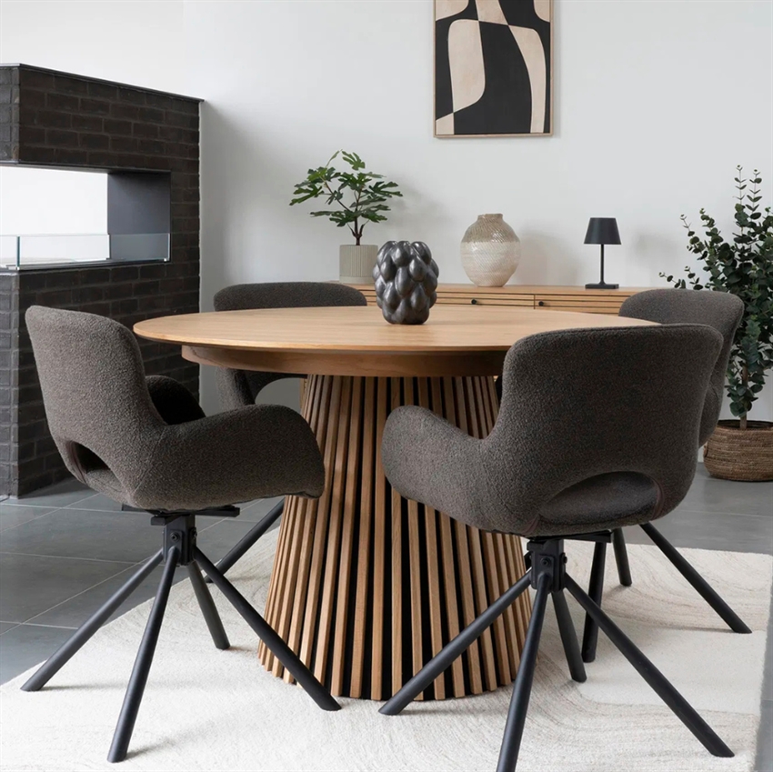 Opgrader din spiseoplevelse med Lisette spisebordet, hvor stil møder praktisk design. Fremstillet af solid egefiner og MDF, tilbyder Lisette både holdbarhed og en tidløs æstetik. Den naturlige farve komplementerer enhver indretning og skaber en varm, indbydende atmosfære i dit hjem.