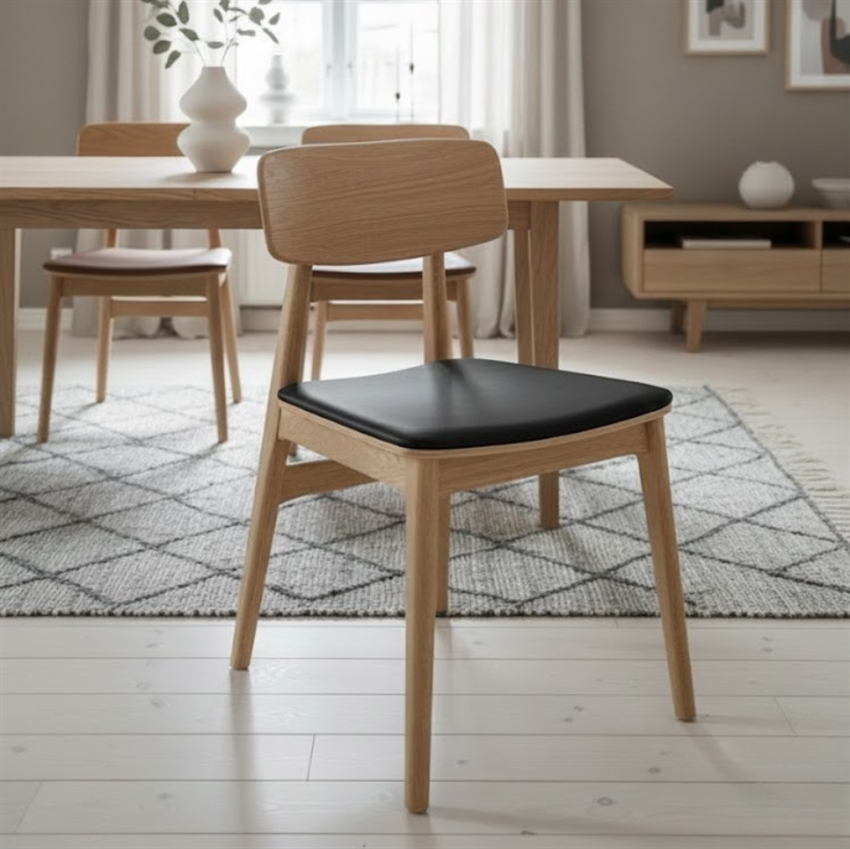 Livo spisebordsstol | Egetræ m. sort sædeUniqueUniqueUniqueUniqueUniqueUniqueUnique