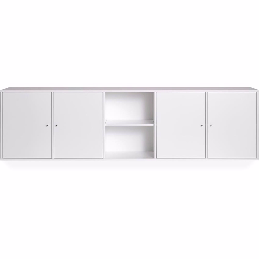 Skænken findes i tre forskellige mål, hvilket gør det muligt at kombinere de forskellige moduler på ønsket vis. Skænken kommer med ophæng. Bag hver låge finder du en hylde, som kan justeres i højden.