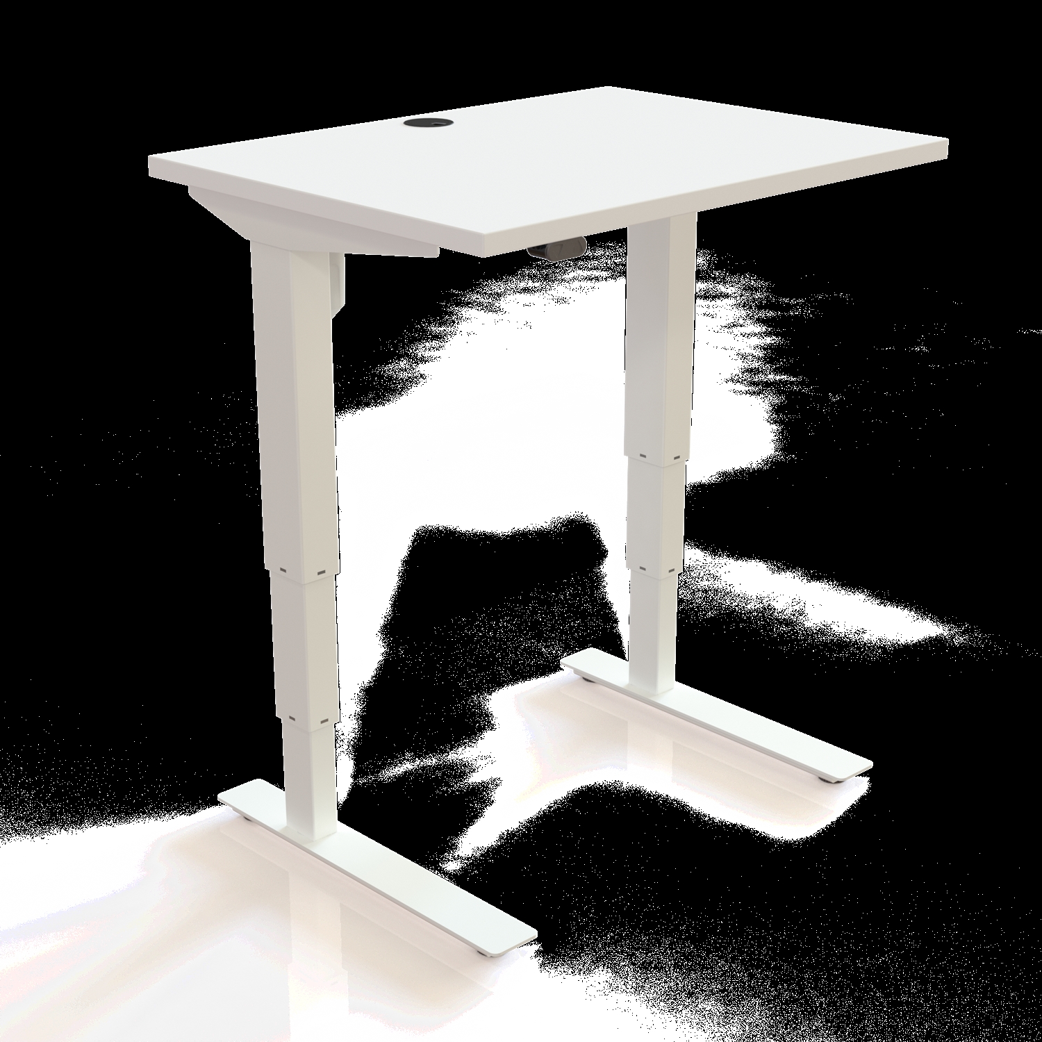 Den kompakte bordplade på 80 × 60 cm gør bordet oplagt til mindre arbejdspladser eller fleksible kontormiljøer. Bordpladen er fremstillet i slidstærk hvid melamin, som er modstandsdygtig over for daglig brug og samtidig nem at holde ren. En integreret kabelgennemføring sikrer, at kabler nemt kan organiseres og holdes ude af syne.