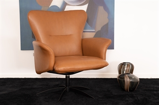 Med sit moderne og minimalistiske design passer Opus lænestolen ind i ethvert rum og enhver indretning. Stolens evne til at dreje øger dens funktionalitet og gør den ideel til stuer, læsehjørner eller endda som et stilfuldt supplement til dit kontor. Det lækre cognacfarvede læder er ikke blot smukt at se på; det er også holdbart og nemt at vedligeholde, hvilket sikrer, at stolen forbliver en central del af dit hjem i mange år.