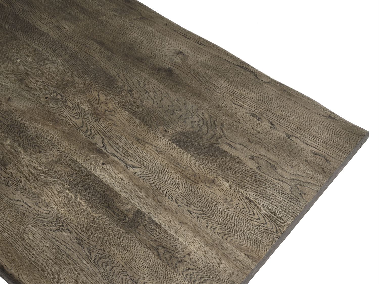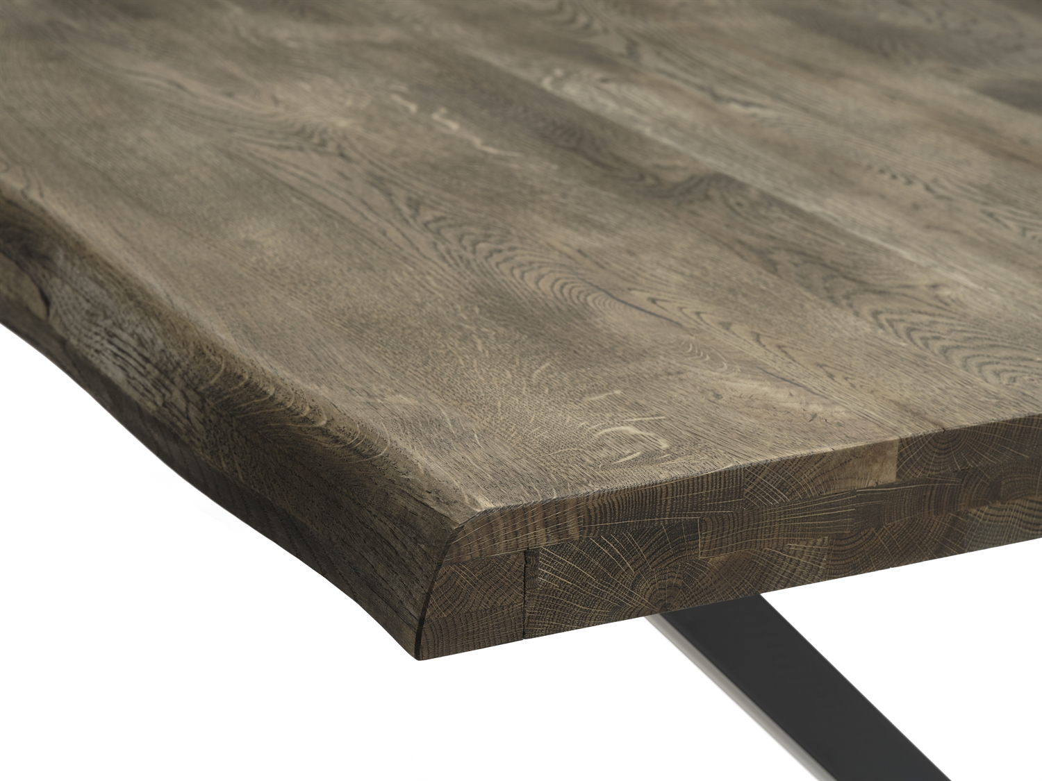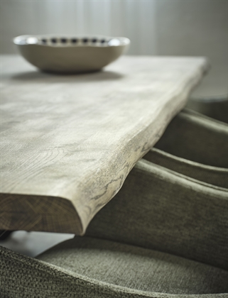 Det enestående håndværk kommer særligt til udtryk i kombinationen af materialer og detaljer. Den røgede behandling trænger dybt ind i egetræets fibre og fremhæver de naturlige åretegninger med en varm, mørk glød, som giver et langt mere eksklusivt udtryk end klassisk lys eg. Den rustikke "wild edge" – eller naturkant – følger træets oprindelige form og sikrer, at dit bord er et unika, hvor naturens egne linjer får lov at diktere designet.