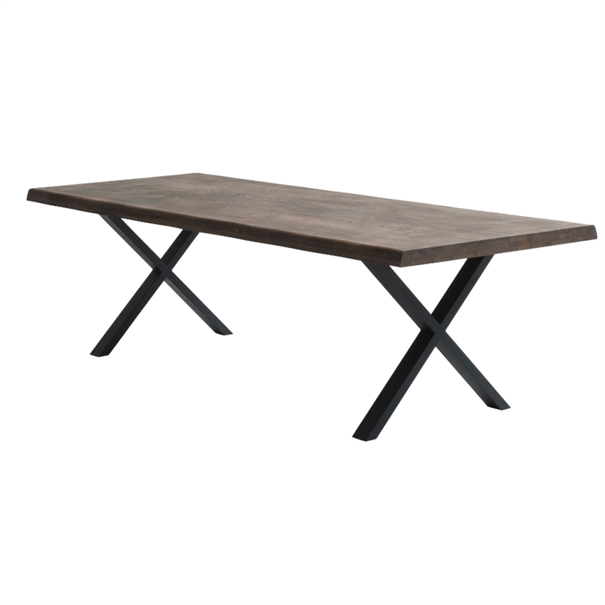 Designet fuldendes af det moderne modspil mellem den tunge, mørke bordplade og de skarpe, sorte metalben, der tilfører et industrielt twist og en lethed til det ellers massive møbel. Hvis du ønsker et mere sammenhængende og monolitisk udtryk, kan du vælge at kombinere pladen med ben i matchende røget eg, hvilket samler bordet i en harmonisk enhed af rent træ. Uanset hvilken kombination du foretrækker, får du med Paris-bordet et naturligt ankerpunkt i rummet, der på én gang virker både råt, autentisk og tidløst elegant.
