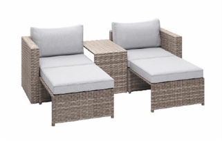 Sandvig loungesæt – 5 dele i brun polyrattan med beige hynder