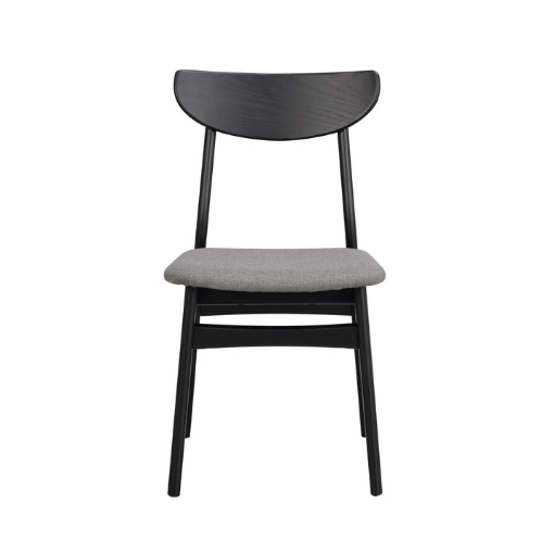 Populær stol fra Rowico i serien Rodham, i sort lakeret egetræ med et lysegråt sæde. Stolen er i massivt eg, i både stel og ryglæn som sikre en behagelig siddekomfort. Det polstrede sæde på Rodham stolen, er både behageligt og elegant.