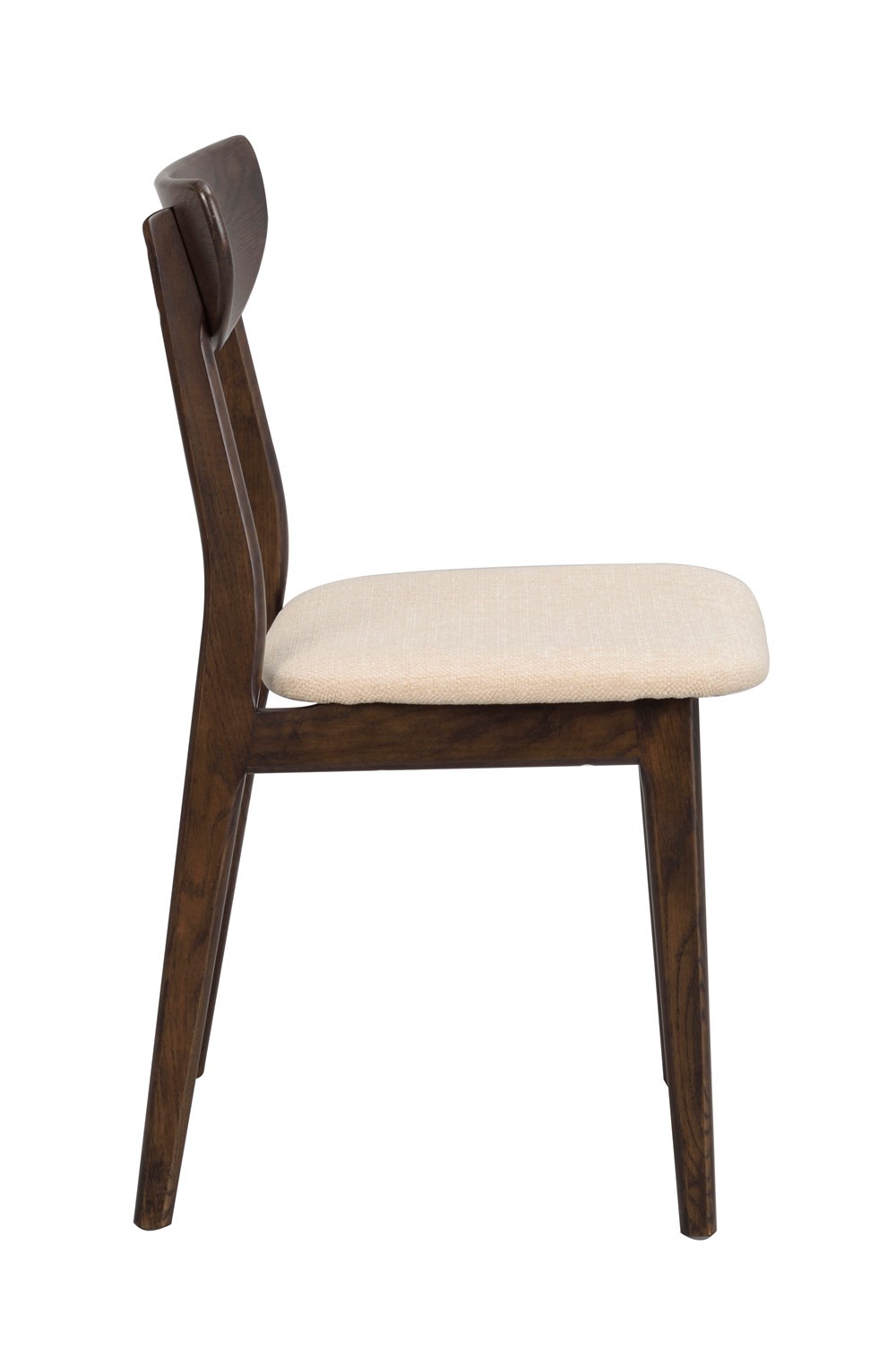 Flot spisebordstol fra Rowico, i serien Nagano. Spisebordstolen er i brunlakeret eg, med sæde i beige stof. Stolen er i tidsløst design, og er designet til at være behagelig med bearbejdede detaljer. Nagano spisebordstolen passer perfekt til stuen, køkken alrummet eller et andet sted i den moderne bolig.