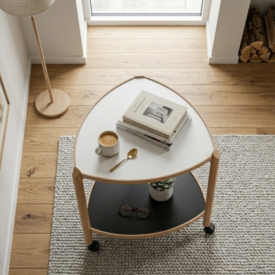 Et klassisk og funktionelt rullebord i tidsløst design. Et minimalistisk alternativ til et sidebord ved lænestolen eller som en dekorativ afsats i stuen.