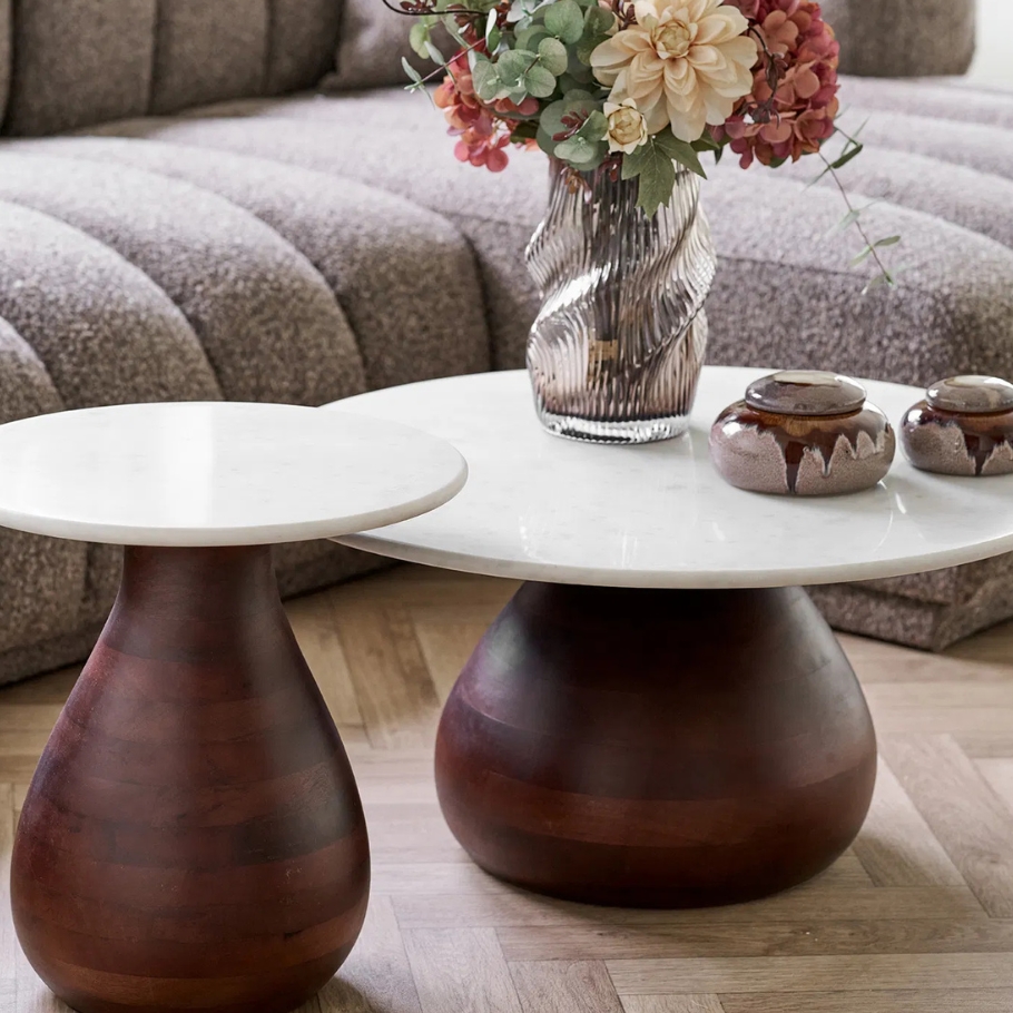 Verona hjørnebord Ø40 | Mango m. marmor